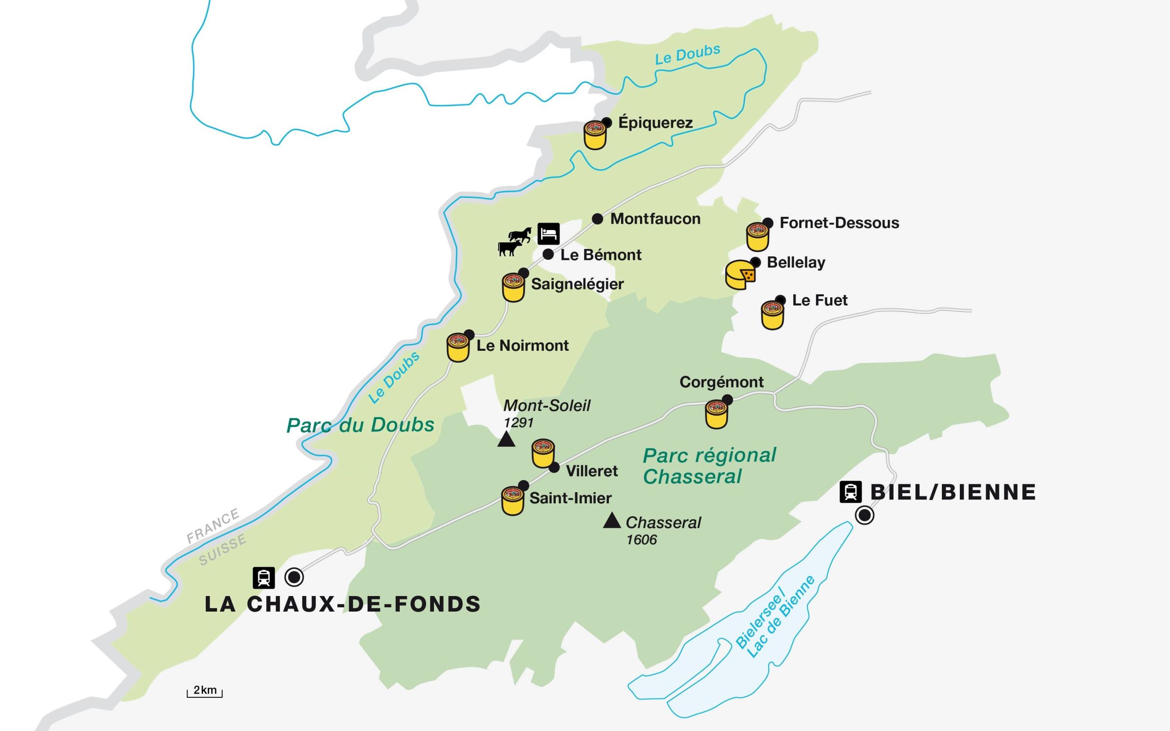 - Mit dem Zug in 25 Minuten nach Saint-Imier.
